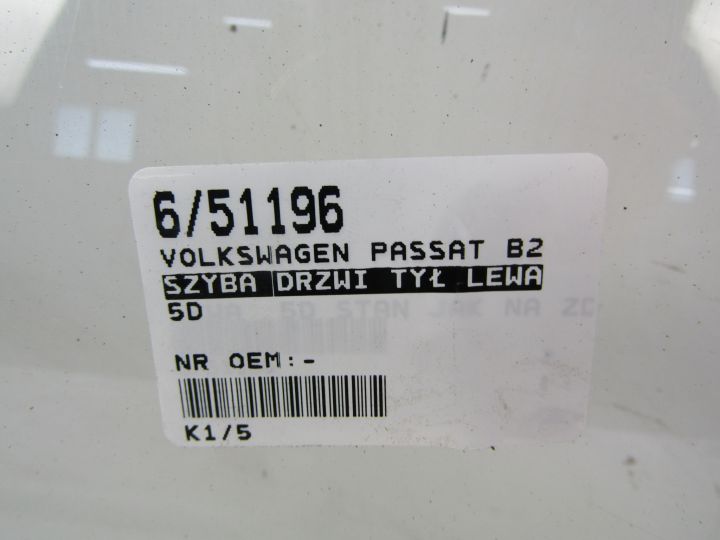 Marka: VOLKSWAGEN Model: VOLKSWAGEN PASSAT B2 Grupa: NADWOZIE Podgrupa: SZYBY Karta Pojazdu: 0 NrEtykiety: 6/51196 Ilość: 1 Numer Regału: K1/5 Kod Lakieru: Kod Nadwozia: Typ Silnika: