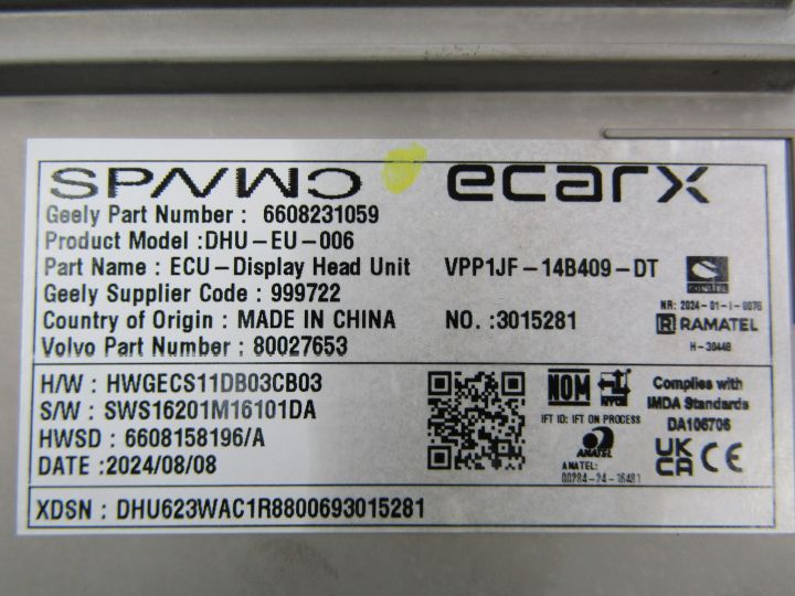 VOLVO EX30 - STEROWNIK CENTRALNEGO ZAMKA 5D AWD